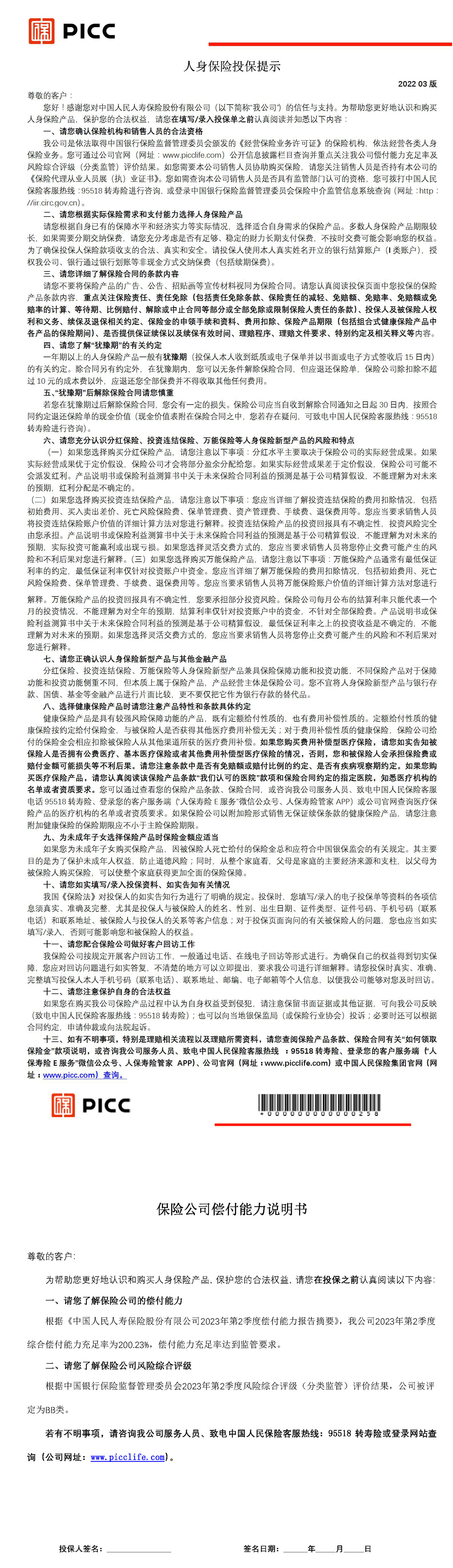 中國人民人壽保險股份有限公司將及時更新上述信息,如遇未能更新情況,請訪問官方網(wǎng)站進(jìn)行查詢。官方網(wǎng)站地址 https://www.picclife.com